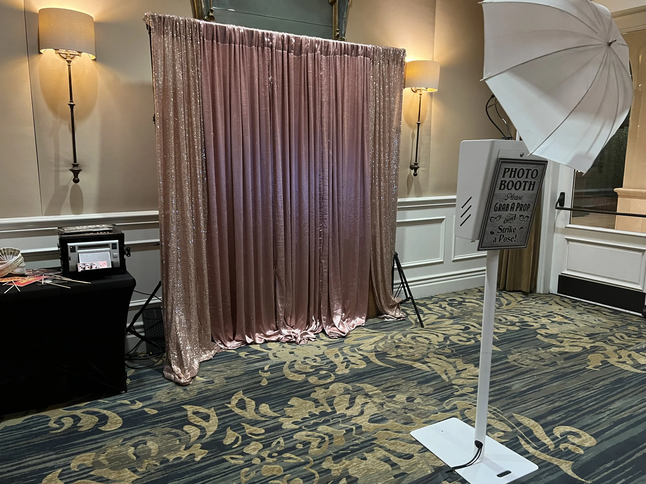 Props can make or break a photo booth. we offer a variety of props and can even do themed props Ex. 80's, 90's etc. Custom back drops with step & repeat patterns or solid colored backdrops are available.
